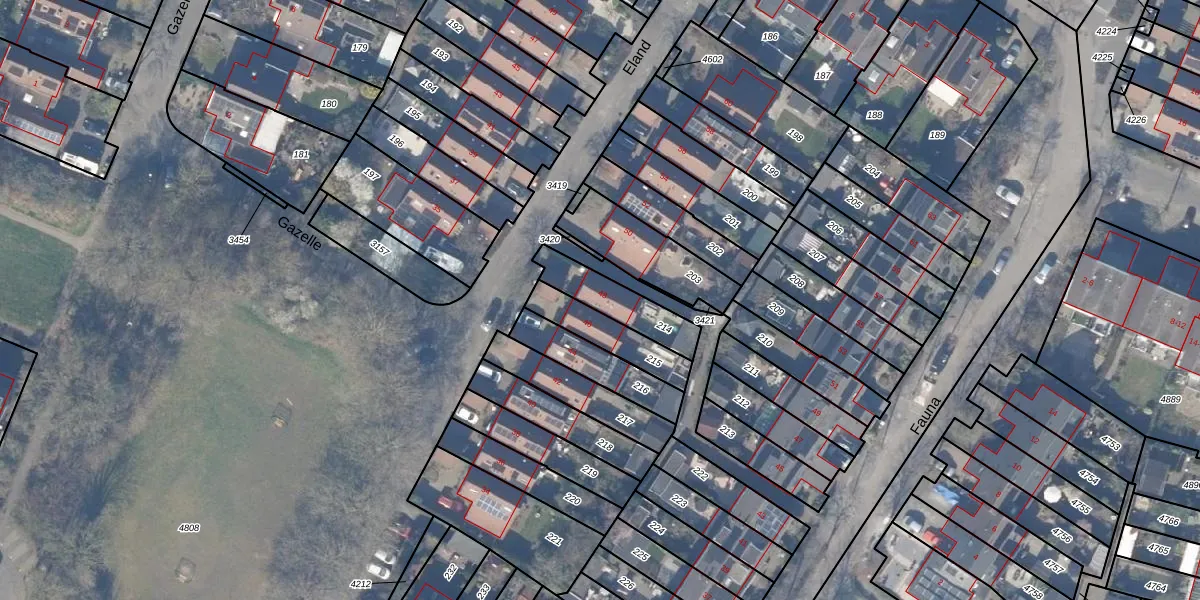 Gebruik de zoekbalk of klik op een perceel voor informatie over de adressen binnen dit perceel.