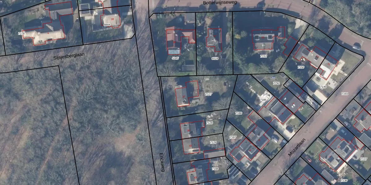 Ericaweg 37 is gelegen op kadastraal perceel HZN00B7127. Deze kadastrale aanduiding is uniek en wordt gebruikt door het Kadaster om eigendomsrechten en andere zakelijke rechten vast te leggen. Het perceel maakt onderdeel uit van de kadastrale gemeente Huizen.