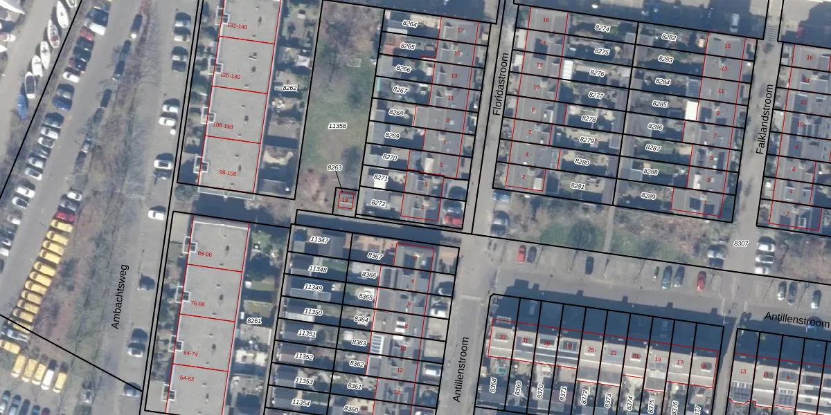 Het perceel waarop Floridastroom 1 staat heeft een oppervlakte van 172 m². Dit is een middelgroot perceel. De perceeloppervlakte wordt geregistreerd door het Kadaster. Gedetailleerde informatie over de maten van dit perceel kunt u vinden in het rapport Kadastrale kaart met maatvoering van Floridastroom 1.