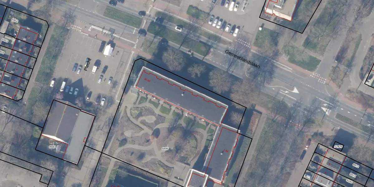 Het perceel waarop Gemeenlandslaan 42 staat heeft een oppervlakte van 3745 m². Dit is een zeer groot perceel. De perceeloppervlakte wordt geregistreerd door het Kadaster. Gedetailleerde informatie over de maten van dit perceel kunt u vinden in het rapport Kadastrale kaart met maatvoering van Gemeenlandslaan 42.