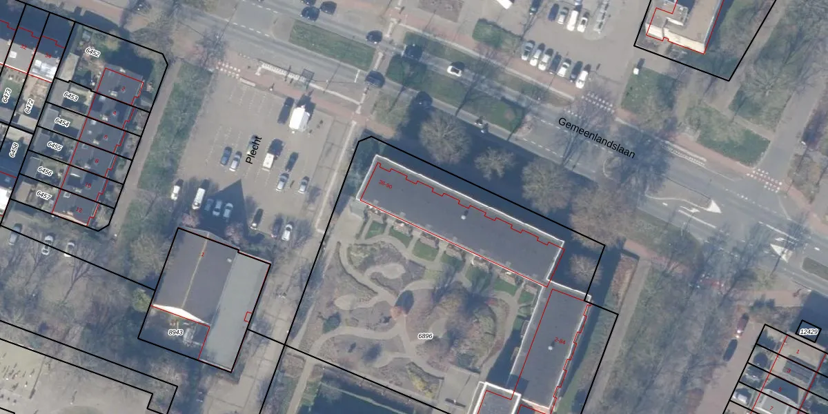 Het perceel waarop Gemeenlandslaan 66 staat heeft een oppervlakte van 3745 m². Dit is een zeer groot perceel. De perceeloppervlakte wordt geregistreerd door het Kadaster. Gedetailleerde informatie over de maten van dit perceel kunt u vinden in het rapport Kadastrale kaart met maatvoering van Gemeenlandslaan 66.