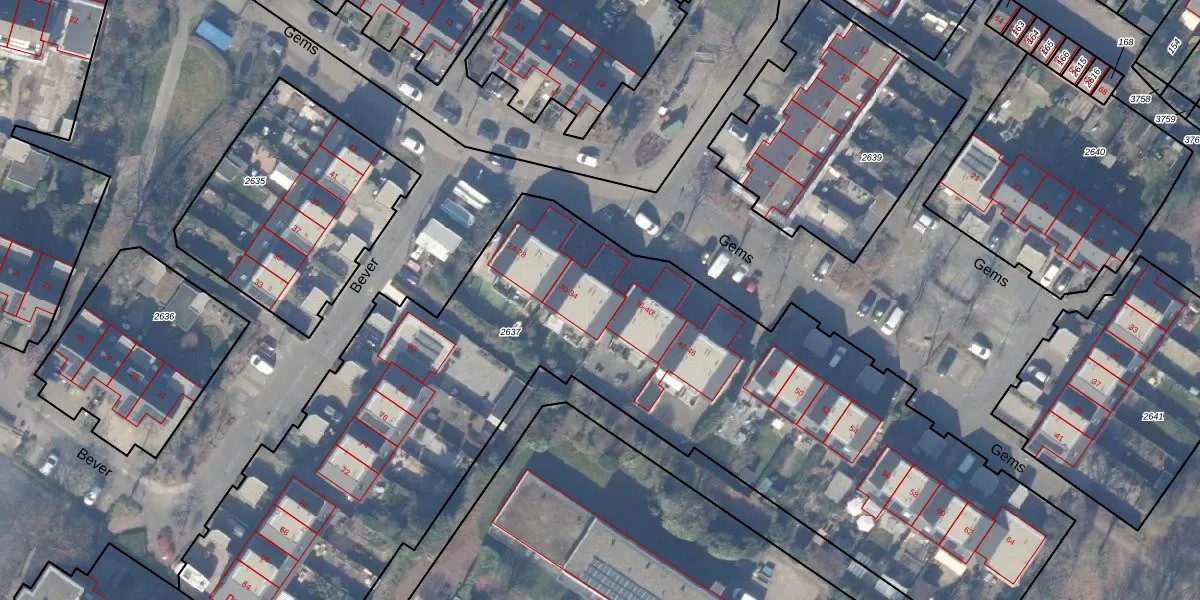 Het perceel waarop Gems 34 staat heeft een oppervlakte van 4590 m². Dit is een zeer groot perceel. De perceeloppervlakte wordt geregistreerd door het Kadaster. Gedetailleerde informatie over de maten van dit perceel kunt u vinden in het rapport Kadastrale kaart met maatvoering van Gems 34.