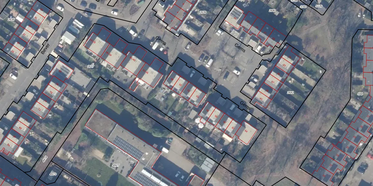 Het perceel waarop Gems 52 staat heeft een oppervlakte van 4590 m². Dit is een zeer groot perceel. De perceeloppervlakte wordt geregistreerd door het Kadaster. Gedetailleerde informatie over de maten van dit perceel kunt u vinden in het rapport Kadastrale kaart met maatvoering van Gems 52.