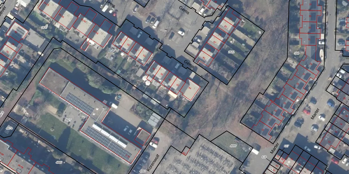 Het perceel waarop Gems 62 staat heeft een oppervlakte van 4590 m². Dit is een zeer groot perceel. De perceeloppervlakte wordt geregistreerd door het Kadaster. Gedetailleerde informatie over de maten van dit perceel kunt u vinden in het rapport Kadastrale kaart met maatvoering van Gems 62.