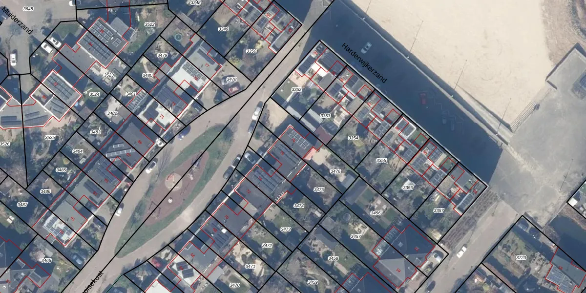 Het perceel waarop het adres ligt is HZN00-E-3476. De afkorting 'HZN00' staat voor kadastrale gemeente Huizen. Het perceel is kleiner dan gemiddeld in Huizen. Het perceel is 348 m² groot, terwijl het gemiddelde ligt op 1437,02 m². De grootste perceeloppervlakte in de kadastrale gemeente is 4,26 km². De kleinste oppervlakte bedraagt 0 m². Dit is het enige adres dat aanwezig is op het perceel. In de Basisregistratie Kadaster (BRK) werden de grenzen van het perceel geregistreerd op 10-09-2001.
