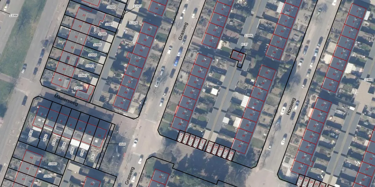 Het perceel waarop Grasweg 23 staat heeft een oppervlakte van 6995 m². Dit is een zeer groot perceel. De perceeloppervlakte wordt geregistreerd door het Kadaster. Gedetailleerde informatie over de maten van dit perceel kunt u vinden in het rapport Kadastrale kaart met maatvoering van Grasweg 23.