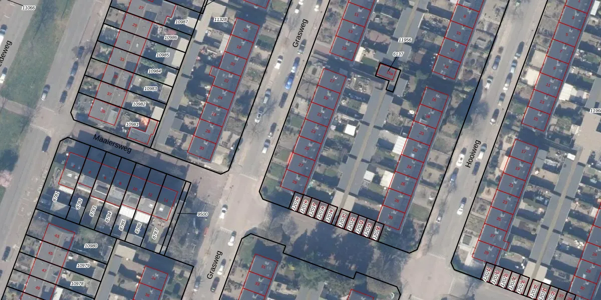 Het perceel waarop Grasweg 25 staat heeft een oppervlakte van 6995 m². Dit is een zeer groot perceel. De perceeloppervlakte wordt geregistreerd door het Kadaster. Gedetailleerde informatie over de maten van dit perceel kunt u vinden in het rapport Kadastrale kaart met maatvoering van Grasweg 25.