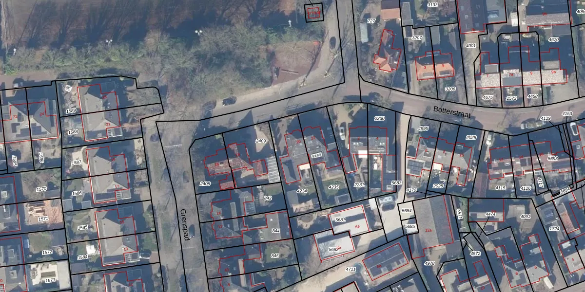 Het perceel waarop Grenspad 20 staat heeft een oppervlakte van 360 m². Dit is een groot perceel. De perceeloppervlakte wordt geregistreerd door het Kadaster. Gedetailleerde informatie over de maten van dit perceel kunt u vinden in het rapport Kadastrale kaart met maatvoering van Grenspad 20.