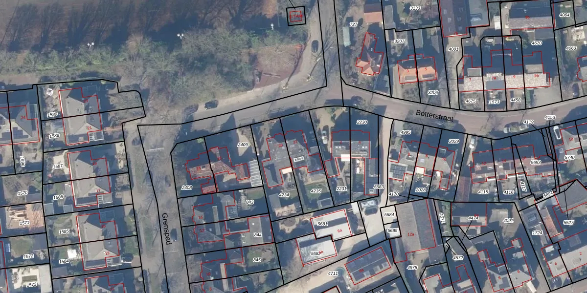 Het perceel waarop Grenspad 22 staat heeft een oppervlakte van 360 m². Dit is een groot perceel. De perceeloppervlakte wordt geregistreerd door het Kadaster. Gedetailleerde informatie over de maten van dit perceel kunt u vinden in het rapport Kadastrale kaart met maatvoering van Grenspad 22.