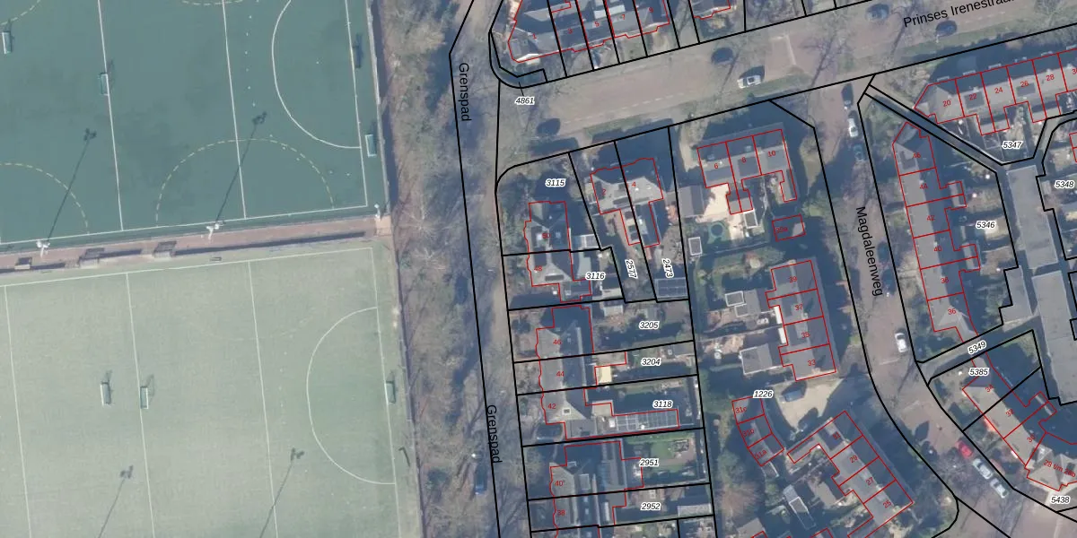 Grenspad 48 is gelegen op kadastraal perceel HZN00D3116. Deze kadastrale aanduiding is uniek en wordt gebruikt door het Kadaster om eigendomsrechten en andere zakelijke rechten vast te leggen. Het perceel maakt onderdeel uit van de kadastrale gemeente Huizen.