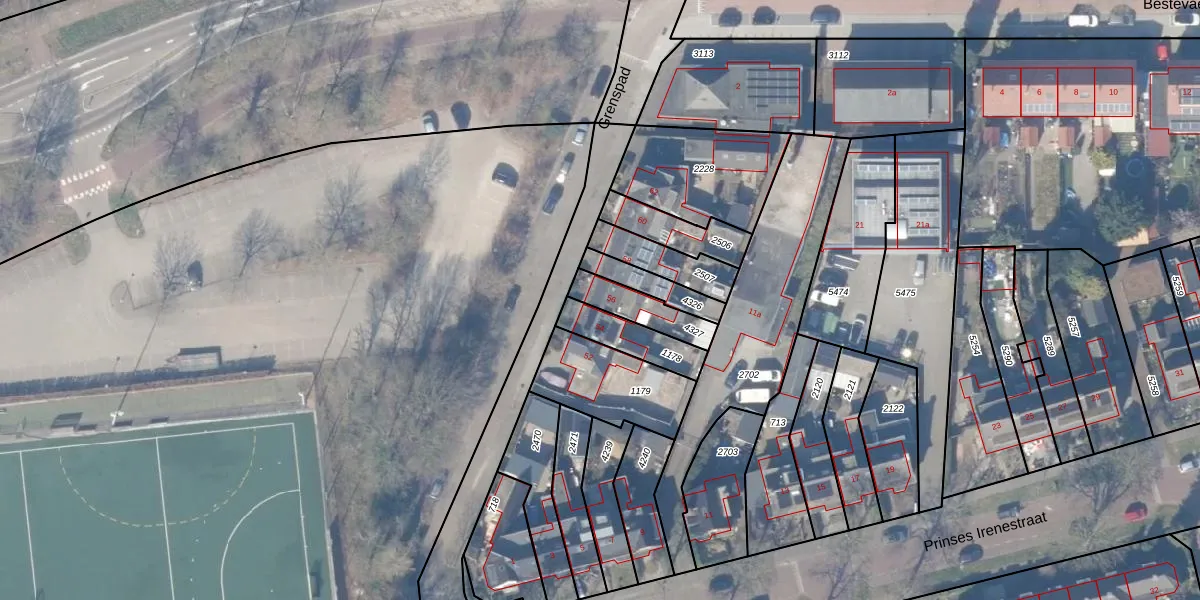 Gebruik de zoekbalk of klik op een perceel voor informatie over de adressen binnen dit perceel.