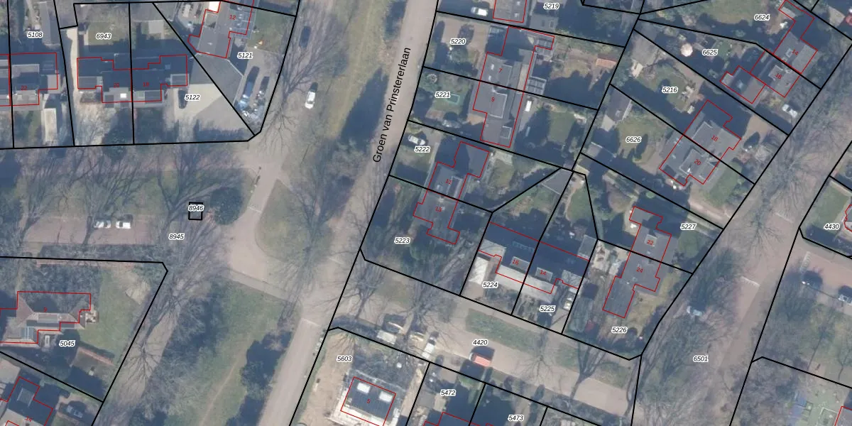 Groen van Prinstererlaan 13 is gelegen op kadastraal perceel HZN00B5223. Deze kadastrale aanduiding is uniek en wordt gebruikt door het Kadaster om eigendomsrechten en andere zakelijke rechten vast te leggen. Het perceel maakt onderdeel uit van de kadastrale gemeente Huizen.