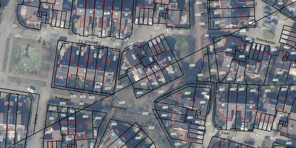 Het perceel waarop Grondel 20 staat heeft een oppervlakte van 34 m². Dit is een klein perceel. De perceeloppervlakte wordt geregistreerd door het Kadaster. Gedetailleerde informatie over de maten van dit perceel kunt u vinden in het rapport Kadastrale kaart met maatvoering van Grondel 20.