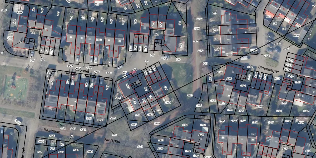 Het perceel waarop Grondel 30 staat heeft een oppervlakte van 33 m². Dit is een klein perceel. De perceeloppervlakte wordt geregistreerd door het Kadaster. Gedetailleerde informatie over de maten van dit perceel kunt u vinden in het rapport Kadastrale kaart met maatvoering van Grondel 30.