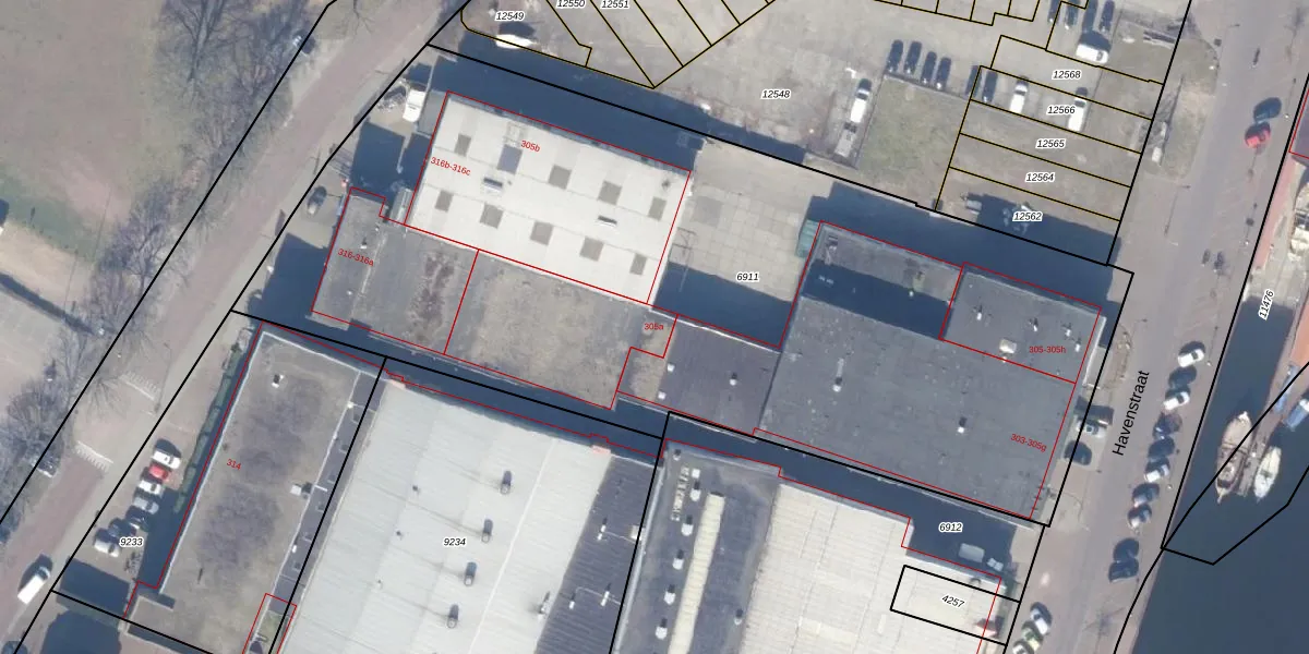 Havenstraat 305-a is gelegen op kadastraal perceel HZN00C6911. Deze kadastrale aanduiding is uniek en wordt gebruikt door het Kadaster om eigendomsrechten en andere zakelijke rechten vast te leggen. Het perceel maakt onderdeel uit van de kadastrale gemeente Huizen.