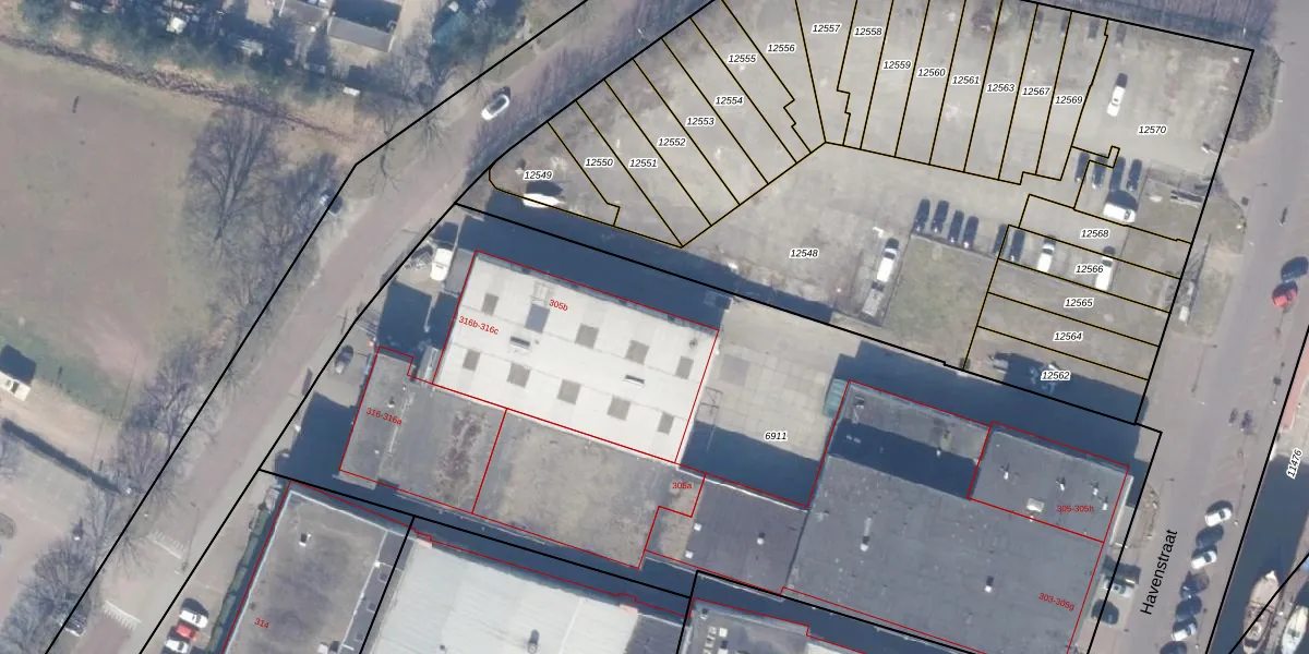 Havenstraat 305-b is gelegen op kadastraal perceel HZN00C6911. Deze kadastrale aanduiding is uniek en wordt gebruikt door het Kadaster om eigendomsrechten en andere zakelijke rechten vast te leggen. Het perceel maakt onderdeel uit van de kadastrale gemeente Huizen.