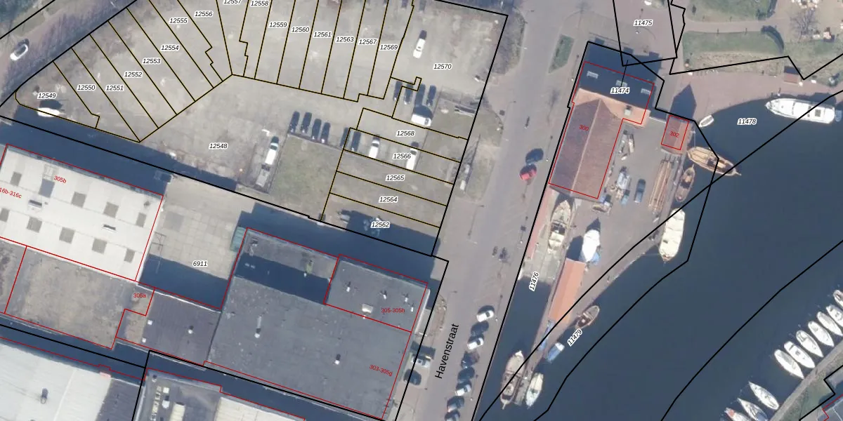 Havenstraat 307-b is gelegen op kadastraal perceel HZN00C12564. Deze kadastrale aanduiding is uniek en wordt gebruikt door het Kadaster om eigendomsrechten en andere zakelijke rechten vast te leggen. Het perceel maakt onderdeel uit van de kadastrale gemeente Huizen.