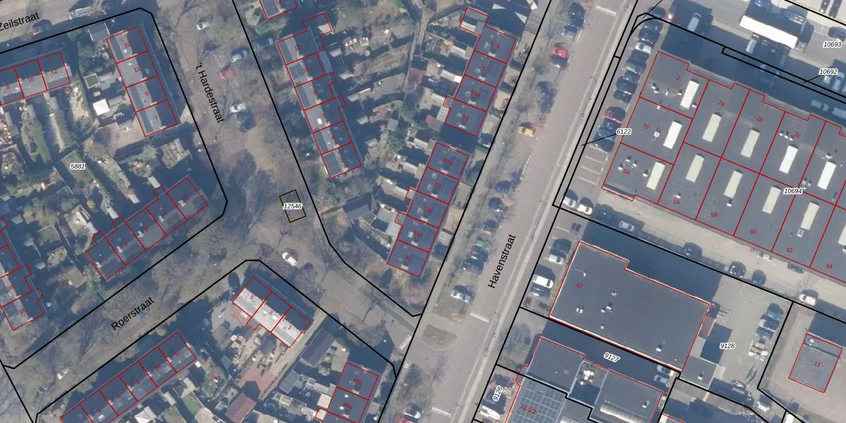 Het perceel waarop Havenstraat 51-b staat heeft een oppervlakte van 7848 m². Dit is een zeer groot perceel. De perceeloppervlakte wordt geregistreerd door het Kadaster. Gedetailleerde informatie over de maten van dit perceel kunt u vinden in het rapport Kadastrale kaart met maatvoering van Havenstraat 51-b.