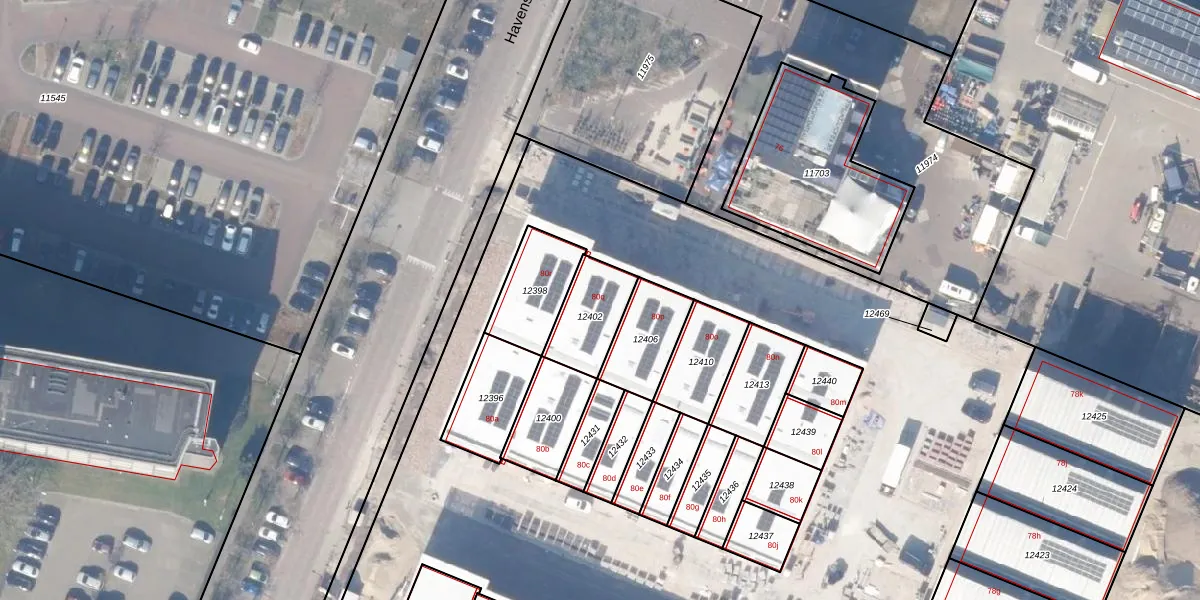 Havenstraat 80-q is gelegen op kadastraal perceel HZN00C12402. Deze kadastrale aanduiding is uniek en wordt gebruikt door het Kadaster om eigendomsrechten en andere zakelijke rechten vast te leggen. Het perceel maakt onderdeel uit van de kadastrale gemeente Huizen.