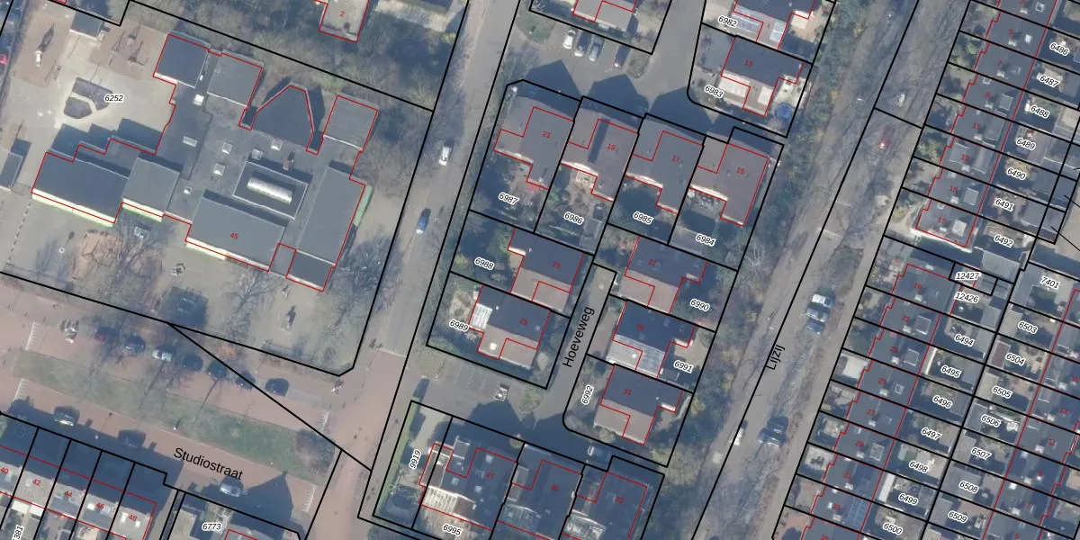 Hoeveweg 25 is gelegen op kadastraal perceel HZN00C6988. Deze kadastrale aanduiding is uniek en wordt gebruikt door het Kadaster om eigendomsrechten en andere zakelijke rechten vast te leggen. Het perceel maakt onderdeel uit van de kadastrale gemeente Huizen.