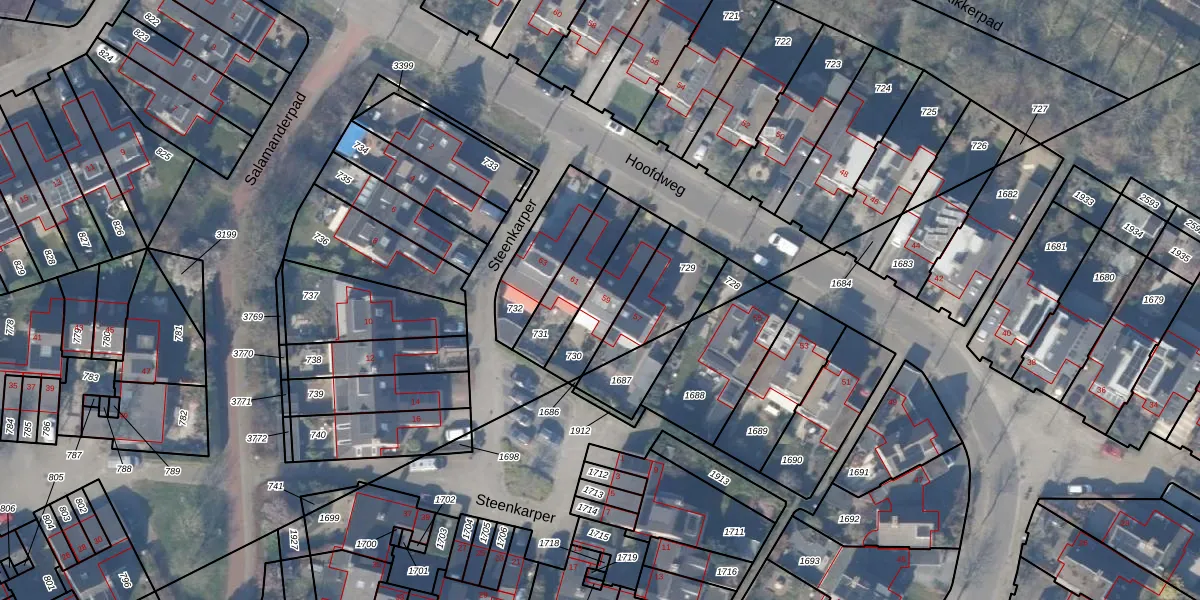 Gebruik de zoekbalk of klik op een perceel voor informatie over de adressen binnen dit perceel.