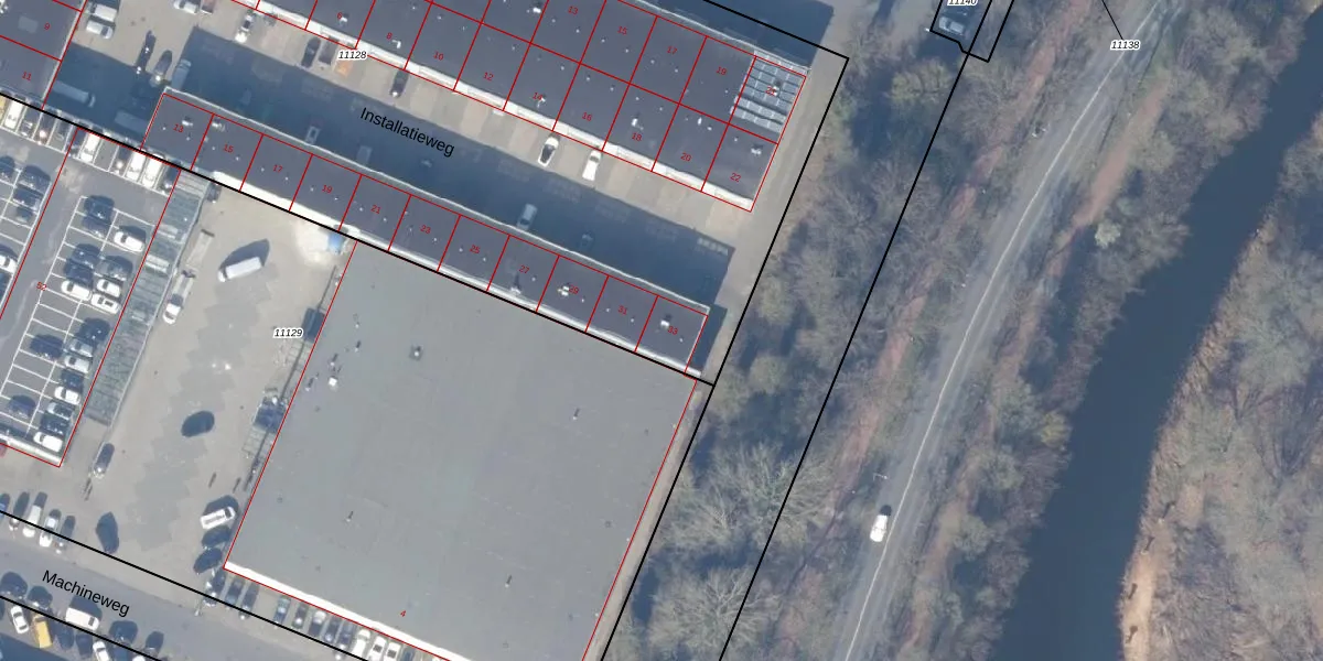 Het perceel waarop Installatieweg 33 staat heeft een oppervlakte van 7636 m². Dit is een zeer groot perceel. De perceeloppervlakte wordt geregistreerd door het Kadaster. Gedetailleerde informatie over de maten van dit perceel kunt u vinden in het rapport Kadastrale kaart met maatvoering van Installatieweg 33.