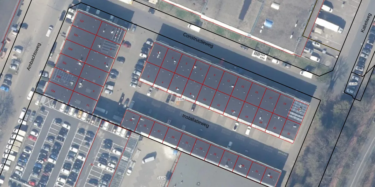 Het perceel waarop Installatieweg 8 staat heeft een oppervlakte van 7636 m². Dit is een zeer groot perceel. De perceeloppervlakte wordt geregistreerd door het Kadaster. Gedetailleerde informatie over de maten van dit perceel kunt u vinden in het rapport Kadastrale kaart met maatvoering van Installatieweg 8.