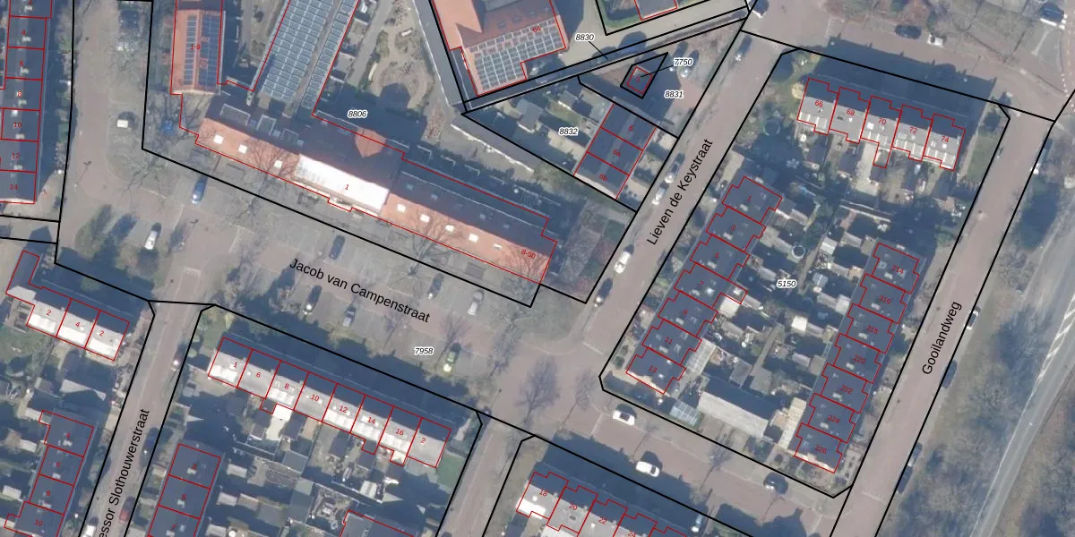 Het perceel waarop Jacob van Campenstraat 1 staat heeft een oppervlakte van 3529 m². Dit is een zeer groot perceel. De perceeloppervlakte wordt geregistreerd door het Kadaster. Gedetailleerde informatie over de maten van dit perceel kunt u vinden in het rapport Kadastrale kaart met maatvoering van Jacob van Campenstraat 1.