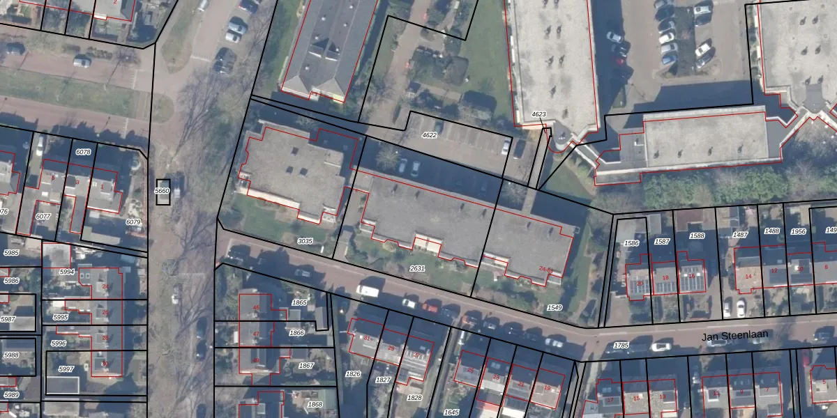 Het perceel waarop Jan Steenlaan 50 staat heeft een oppervlakte van 1015 m². Dit is een zeer groot perceel. De perceeloppervlakte wordt geregistreerd door het Kadaster. Gedetailleerde informatie over de maten van dit perceel kunt u vinden in het rapport Kadastrale kaart met maatvoering van Jan Steenlaan 50.
