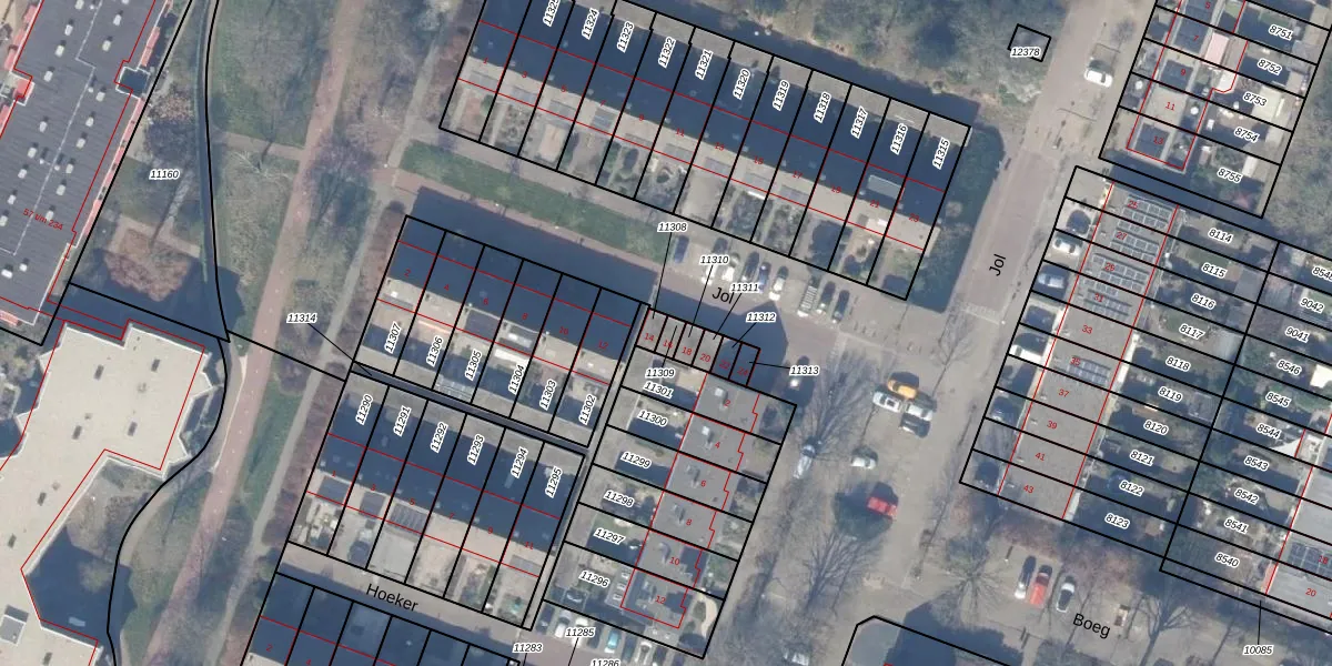 Het perceel waarop Jol 16 staat heeft een oppervlakte van 18 m². Dit is een klein perceel. De perceeloppervlakte wordt geregistreerd door het Kadaster. Gedetailleerde informatie over de maten van dit perceel kunt u vinden in het rapport Kadastrale kaart met maatvoering van Jol 16.