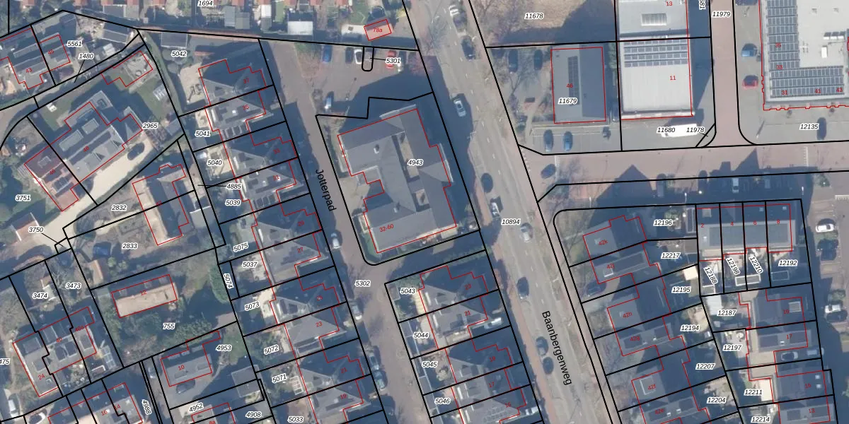 Het perceel waarop Jotterpad 44 staat heeft een oppervlakte van 994 m². Dit is een groot perceel. De perceeloppervlakte wordt geregistreerd door het Kadaster. Gedetailleerde informatie over de maten van dit perceel kunt u vinden in het rapport Kadastrale kaart met maatvoering van Jotterpad 44.