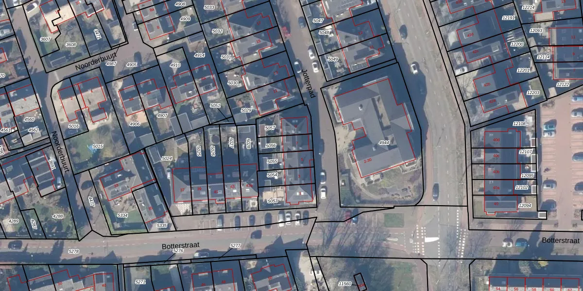 Het perceel waarop Jotterpad 7 staat heeft een oppervlakte van 107 m². Dit is een middelgroot perceel. De perceeloppervlakte wordt geregistreerd door het Kadaster. Gedetailleerde informatie over de maten van dit perceel kunt u vinden in het rapport Kadastrale kaart met maatvoering van Jotterpad 7.