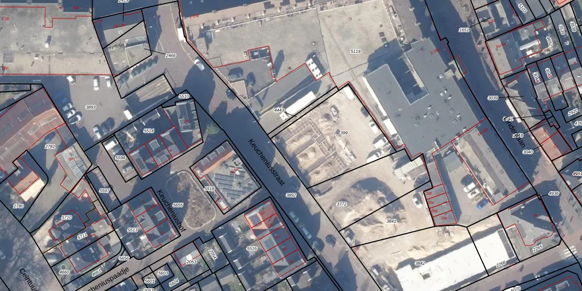 Het perceel waarop Keucheniusstraat 17-e staat heeft een oppervlakte van 825 m². Dit is een groot perceel. De perceeloppervlakte wordt geregistreerd door het Kadaster. Gedetailleerde informatie over de maten van dit perceel kunt u vinden in het rapport Kadastrale kaart met maatvoering van Keucheniusstraat 17-e.