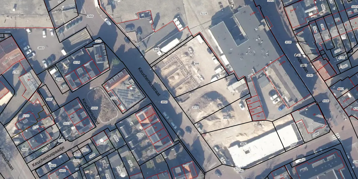 Het perceel waarop Keucheniusstraat 17-g staat heeft een oppervlakte van 825 m². Dit is een groot perceel. De perceeloppervlakte wordt geregistreerd door het Kadaster. Gedetailleerde informatie over de maten van dit perceel kunt u vinden in het rapport Kadastrale kaart met maatvoering van Keucheniusstraat 17-g.