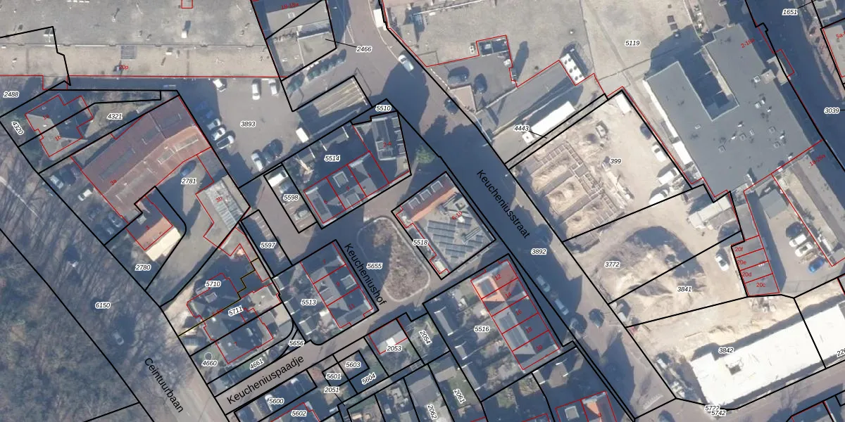 Het perceel waarop Keucheniusstraat 8-c staat heeft een oppervlakte van 320 m². Dit is een groot perceel. De perceeloppervlakte wordt geregistreerd door het Kadaster. Gedetailleerde informatie over de maten van dit perceel kunt u vinden in het rapport Kadastrale kaart met maatvoering van Keucheniusstraat 8-c.