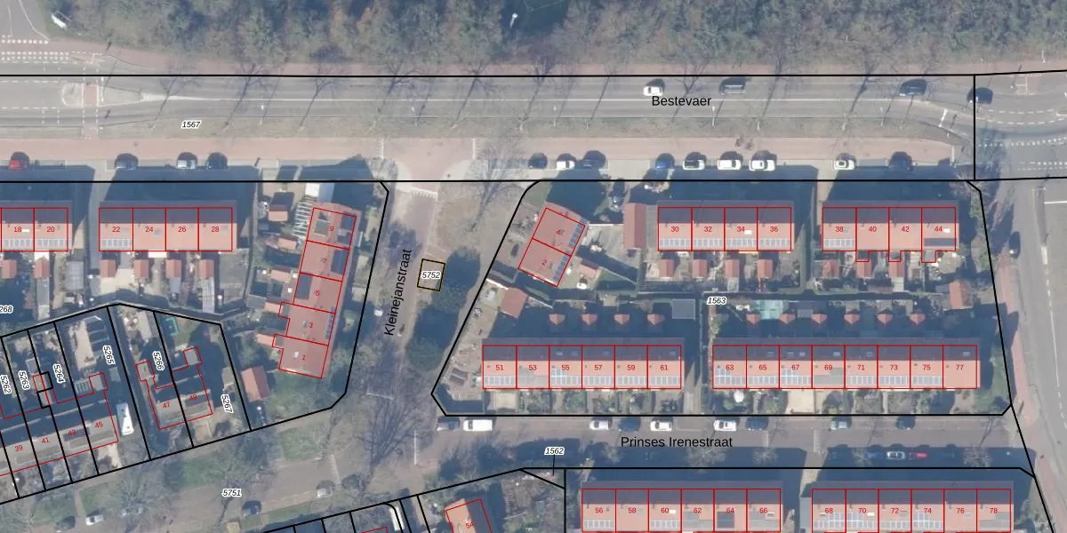 Het perceel waarop Kleinejanstraat 2 staat heeft een oppervlakte van 4265 m². Dit is een zeer groot perceel. De perceeloppervlakte wordt geregistreerd door het Kadaster. Gedetailleerde informatie over de maten van dit perceel kunt u vinden in het rapport Kadastrale kaart met maatvoering van Kleinejanstraat 2.