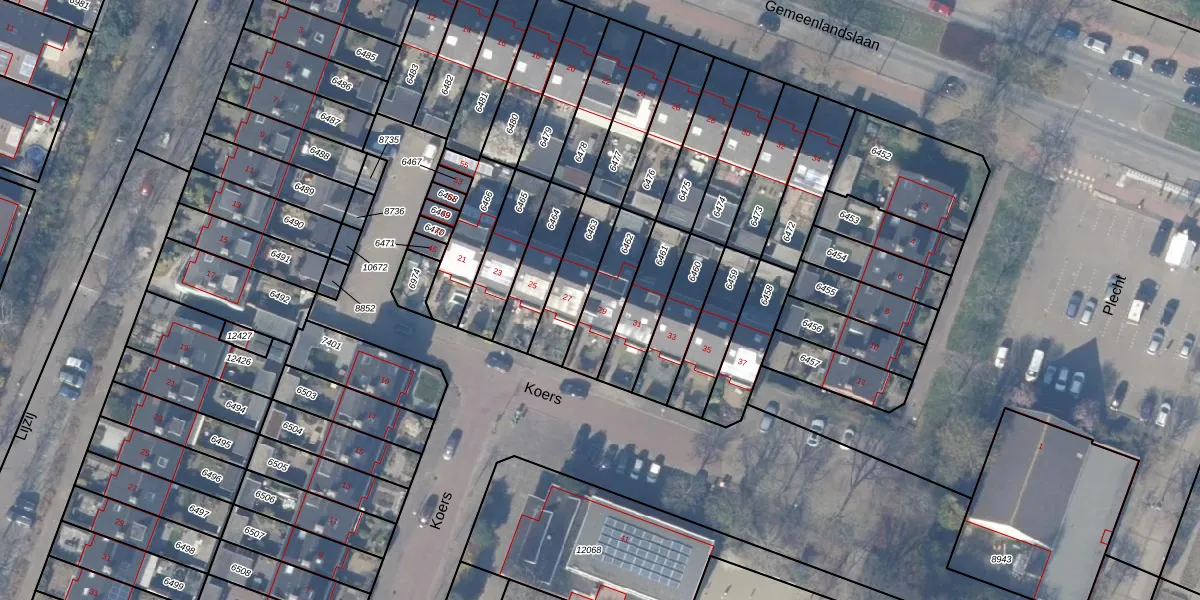 Gebruik de zoekbalk of klik op een perceel voor informatie over de adressen binnen dit perceel.