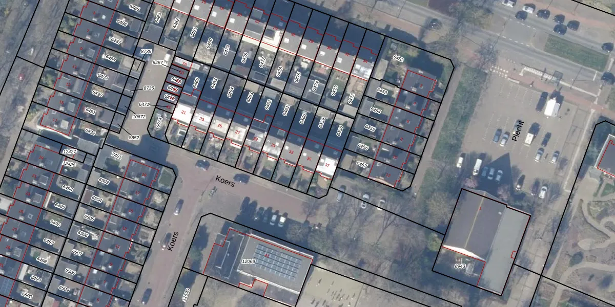 Het perceel waarop Koers 35 staat heeft een oppervlakte van 176 m². Dit is een middelgroot perceel. De perceeloppervlakte wordt geregistreerd door het Kadaster. Gedetailleerde informatie over de maten van dit perceel kunt u vinden in het rapport Kadastrale kaart met maatvoering van Koers 35.