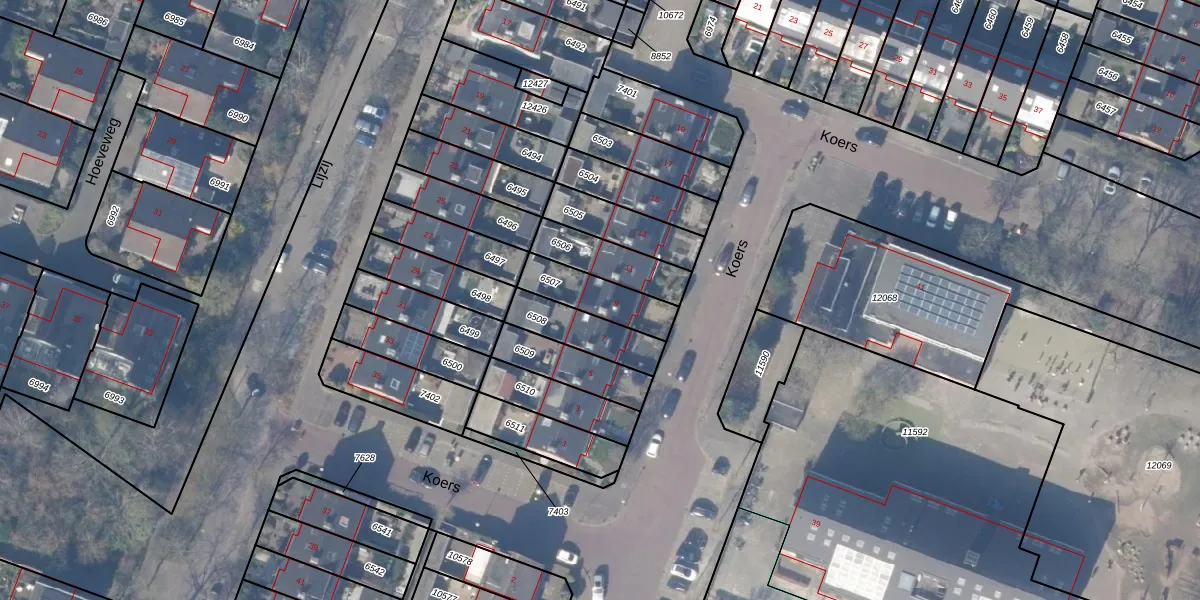 Het perceel waarop Koers 9 staat heeft een oppervlakte van 165 m². Dit is een middelgroot perceel. De perceeloppervlakte wordt geregistreerd door het Kadaster. Gedetailleerde informatie over de maten van dit perceel kunt u vinden in het rapport Kadastrale kaart met maatvoering van Koers 9.