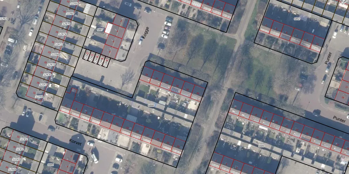 Het perceel waarop Kogge 16 staat heeft een oppervlakte van 3049 m². Dit is een zeer groot perceel. De perceeloppervlakte wordt geregistreerd door het Kadaster. Gedetailleerde informatie over de maten van dit perceel kunt u vinden in het rapport Kadastrale kaart met maatvoering van Kogge 16.