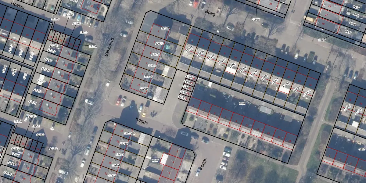 Het perceel waarop Kogge 23 staat heeft een oppervlakte van 18 m². Dit is een klein perceel. De perceeloppervlakte wordt geregistreerd door het Kadaster. Gedetailleerde informatie over de maten van dit perceel kunt u vinden in het rapport Kadastrale kaart met maatvoering van Kogge 23.
