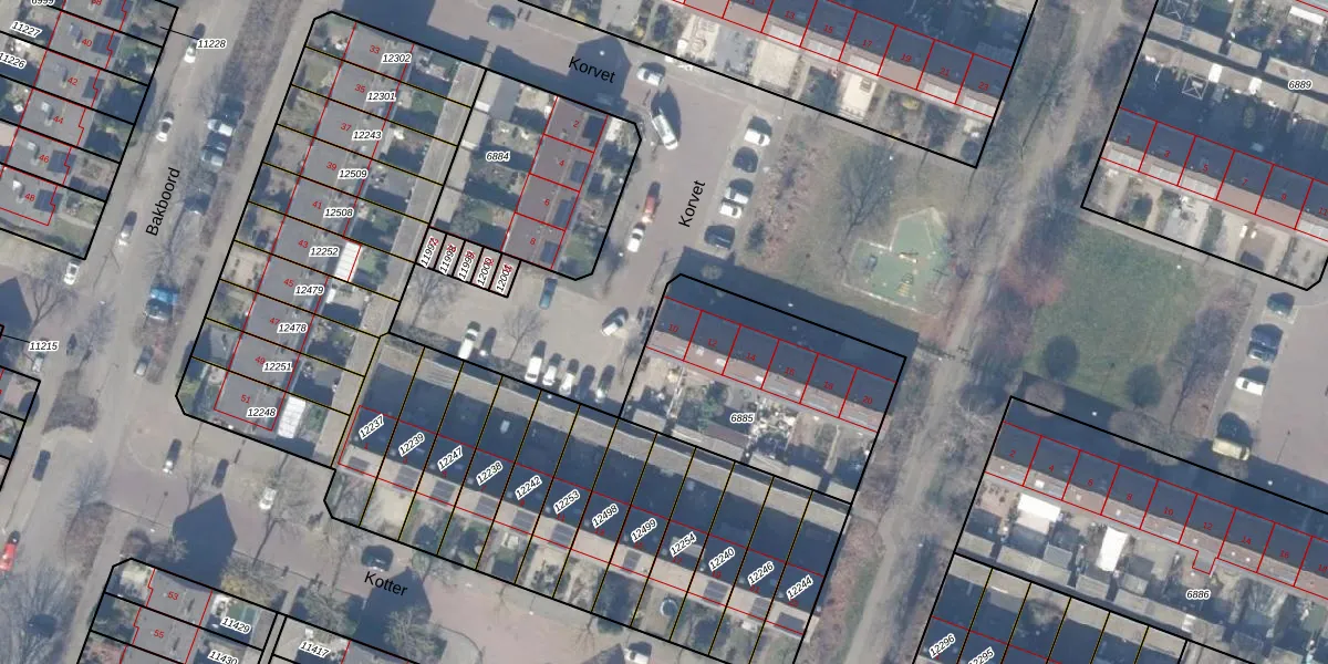 Het perceel waarop Korvet 10 staat heeft een oppervlakte van 881 m². Dit is een groot perceel. De perceeloppervlakte wordt geregistreerd door het Kadaster. Gedetailleerde informatie over de maten van dit perceel kunt u vinden in het rapport Kadastrale kaart met maatvoering van Korvet 10.