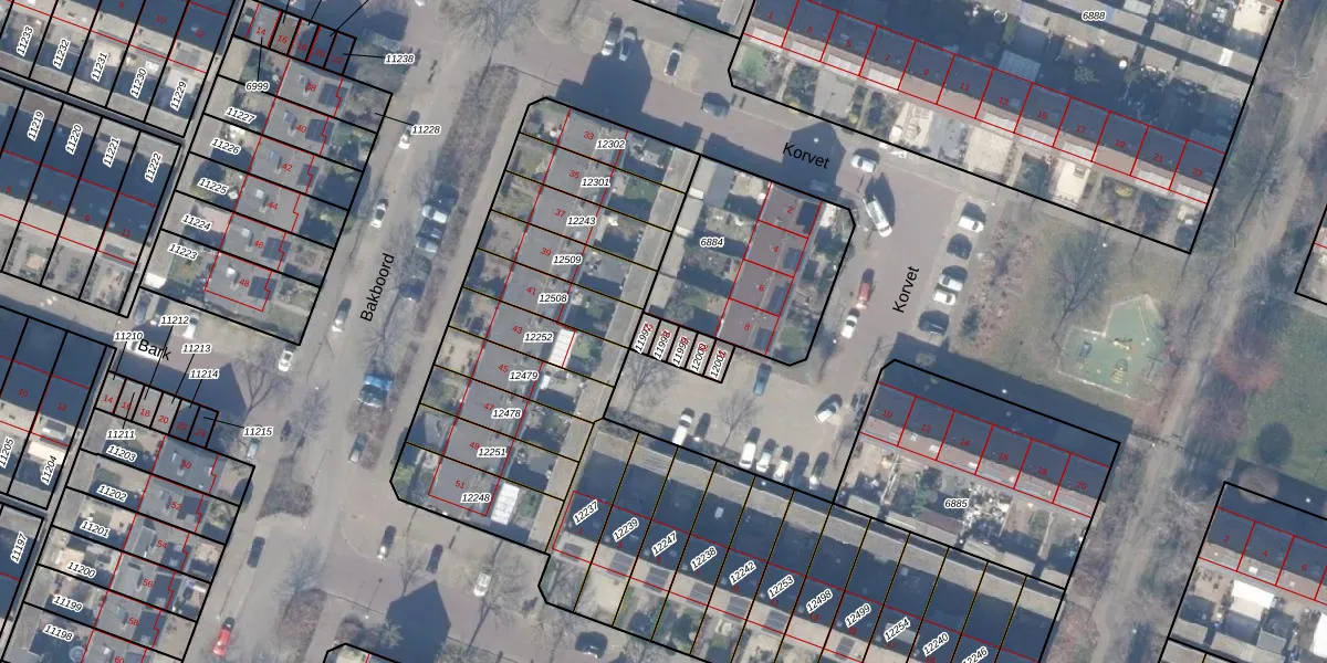 Het perceel waarop Korvet 24 staat heeft een oppervlakte van 18 m². Dit is een klein perceel. De perceeloppervlakte wordt geregistreerd door het Kadaster. Gedetailleerde informatie over de maten van dit perceel kunt u vinden in het rapport Kadastrale kaart met maatvoering van Korvet 24.