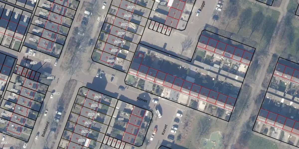 Het perceel waarop Korvet 5 staat heeft een oppervlakte van 3049 m². Dit is een zeer groot perceel. De perceeloppervlakte wordt geregistreerd door het Kadaster. Gedetailleerde informatie over de maten van dit perceel kunt u vinden in het rapport Kadastrale kaart met maatvoering van Korvet 5.
