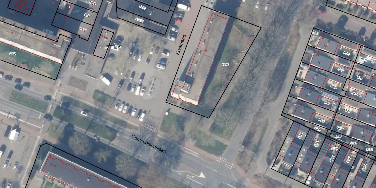 Het perceel waarop Kostmand 15 staat heeft een oppervlakte van 1605 m². Dit is een zeer groot perceel. De perceeloppervlakte wordt geregistreerd door het Kadaster. Gedetailleerde informatie over de maten van dit perceel kunt u vinden in het rapport Kadastrale kaart met maatvoering van Kostmand 15.