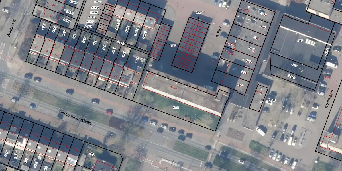 Het perceel waarop Kostmand 30 staat heeft een oppervlakte van 1042 m². Dit is een zeer groot perceel. De perceeloppervlakte wordt geregistreerd door het Kadaster. Gedetailleerde informatie over de maten van dit perceel kunt u vinden in het rapport Kadastrale kaart met maatvoering van Kostmand 30.