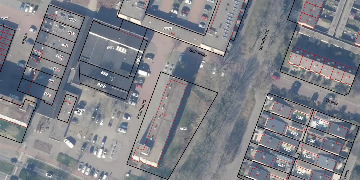 Het perceel waarop Kostmand 33 staat heeft een oppervlakte van 1605 m². Dit is een zeer groot perceel. De perceeloppervlakte wordt geregistreerd door het Kadaster. Gedetailleerde informatie over de maten van dit perceel kunt u vinden in het rapport Kadastrale kaart met maatvoering van Kostmand 33.