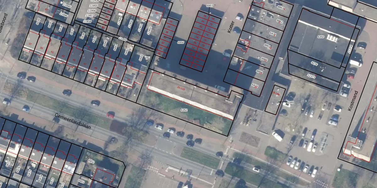 Het perceel waarop Kostmand 44 staat heeft een oppervlakte van 1042 m². Dit is een zeer groot perceel. De perceeloppervlakte wordt geregistreerd door het Kadaster. Gedetailleerde informatie over de maten van dit perceel kunt u vinden in het rapport Kadastrale kaart met maatvoering van Kostmand 44.