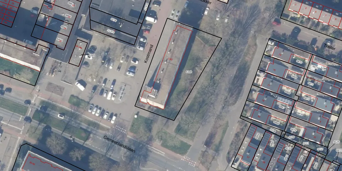 Het perceel waarop Kostmand 59 staat heeft een oppervlakte van 1605 m². Dit is een zeer groot perceel. De perceeloppervlakte wordt geregistreerd door het Kadaster. Gedetailleerde informatie over de maten van dit perceel kunt u vinden in het rapport Kadastrale kaart met maatvoering van Kostmand 59.