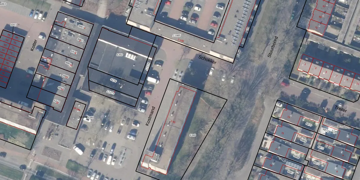 Kostmand 65 is gelegen op kadastraal perceel HZN00C6348. Deze kadastrale aanduiding is uniek en wordt gebruikt door het Kadaster om eigendomsrechten en andere zakelijke rechten vast te leggen. Het perceel maakt onderdeel uit van de kadastrale gemeente Huizen.